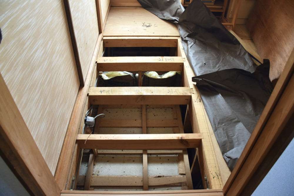 天井裏、床下、外壁、配管周辺などを確認し、必要に応じて建材の一部を採取します。